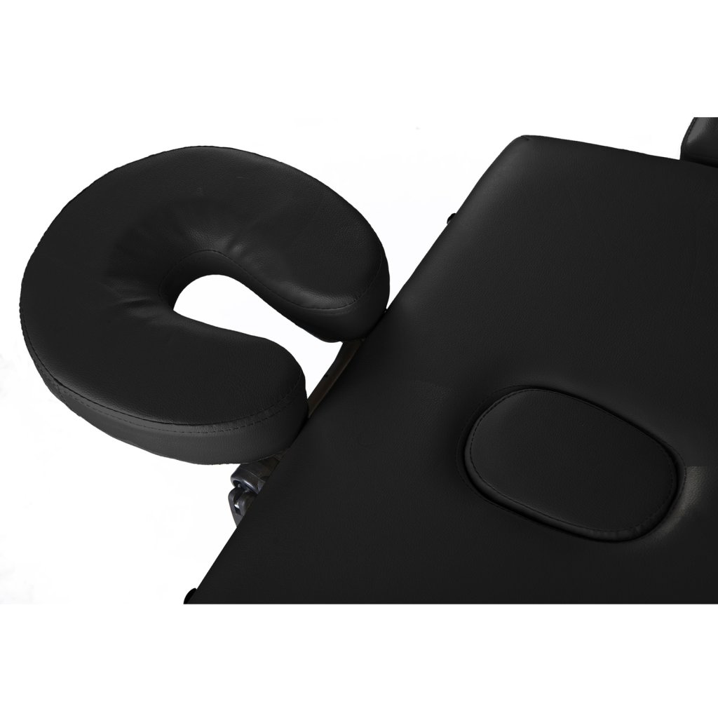 - Plynule nastaviteľná (v dvoch rovinách) opierka hlavy umožňuje ideálne prispôsobenie počas procedúry.
